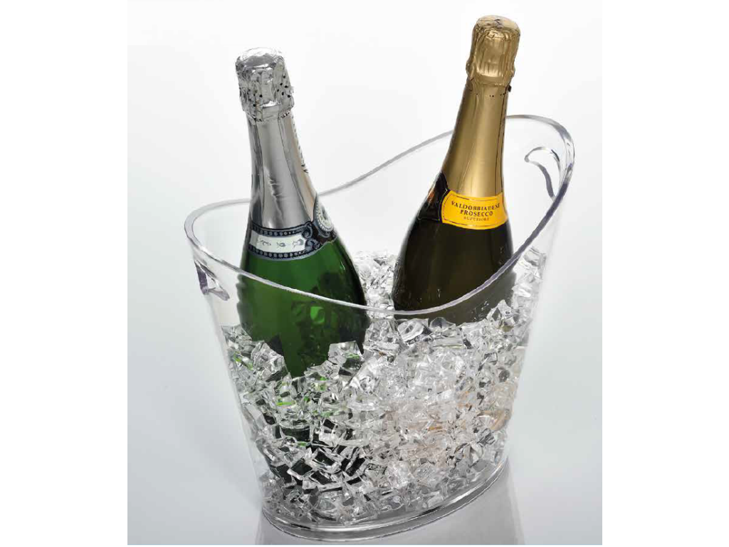 Transparentní chladicí nádoba RIA je elegantním a praktickým doplňkem pro servírování vína, sektu či vody. Díky svému oválnému tvaru pojme 1–2 lahve a udrží je po celou dobu příjemně vychlazené. Průhledné provedení působí moderně a umožňuje snadno vidět etikety lahví, což oceníte při degustacích i slavnostních příležitostech. Nádoba je vyrobena z kvalitního plastu, který je lehký, odolný a snadno se čistí. Skvěle se hodí pro rodinné oslavy, romantické večeře i profesionální použití v restauracích, barech či vinotékách.