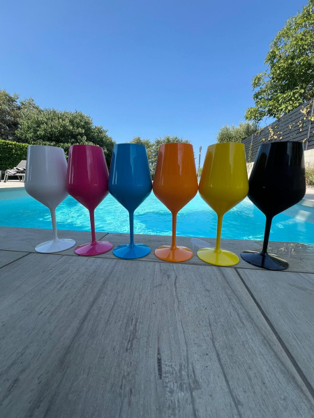 Sklenice na víno Wine VIP 46cl / Máme 13 barev : červená, žlutá, modrá, zelená, bílá, černá, čirá, růžová, oranžová, světle fialová, tmavá modrá, starorůžová. NOVÉ BARVY SVĚTLE FIALOVÁ, TMAVÁ MODRÁ A STARORŮŽOVÁ BABY A STARORŮŽOVÁ PUDROVÁ / následovat bude, tyrkysová, kouřová, zlatá, /