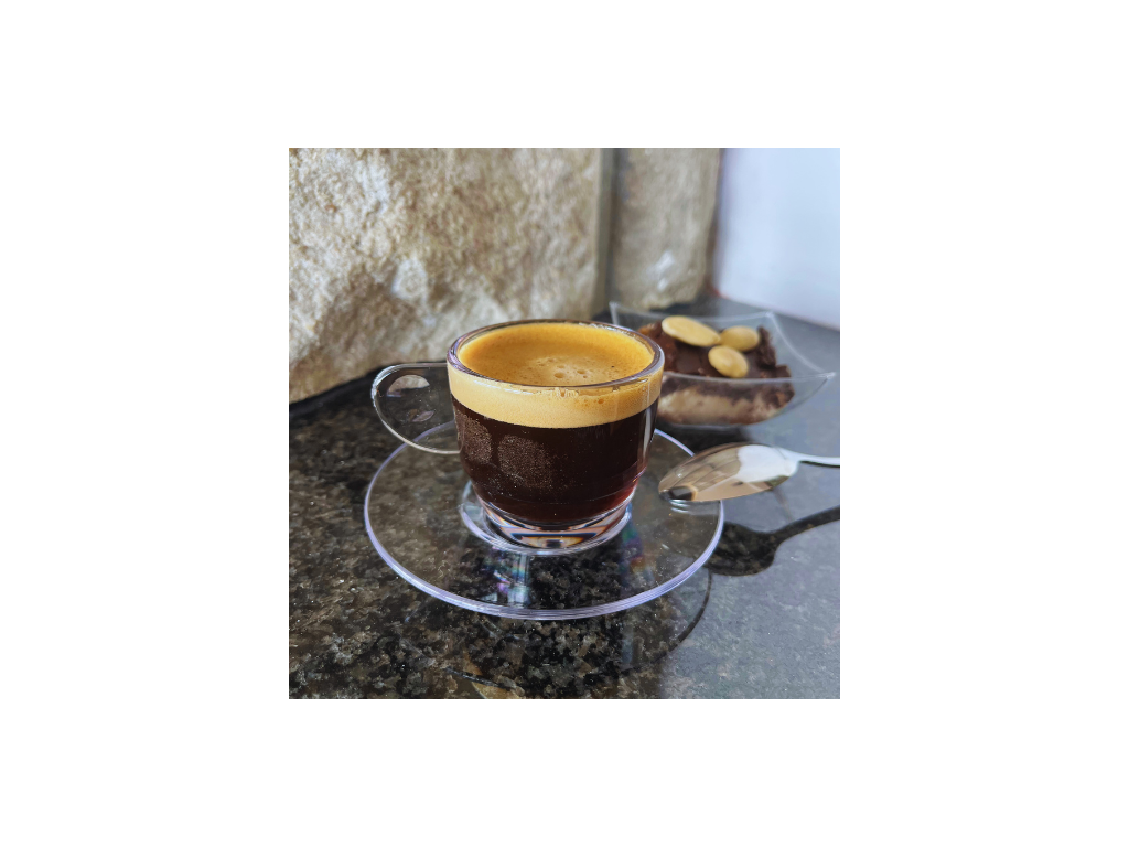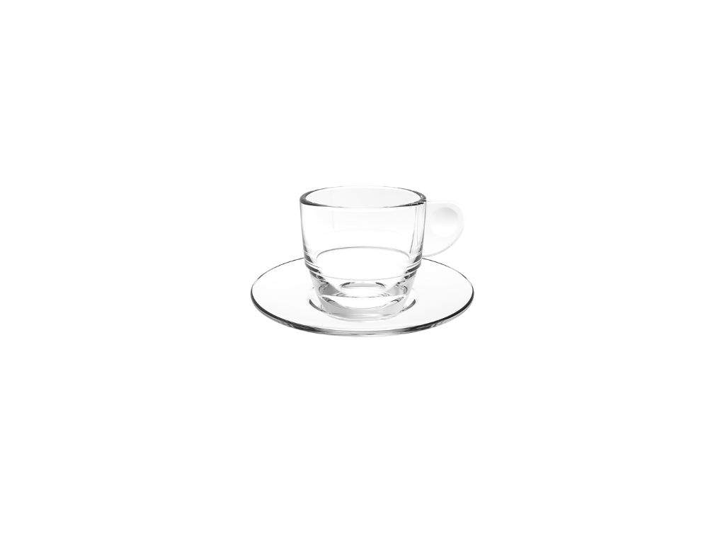 Nerozbitný plastový šálek s podšálkem pro espresso či macchiato, vzhledem připomíná sklo. Hrníčky můžete využít také na servírování čaje.