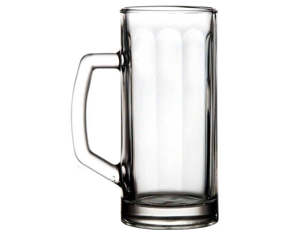 Pivní krýgl s uchem a vnitřní optikou, ideální pro ležáky. Hladká vnější stěna vhodná pro dekoraci.