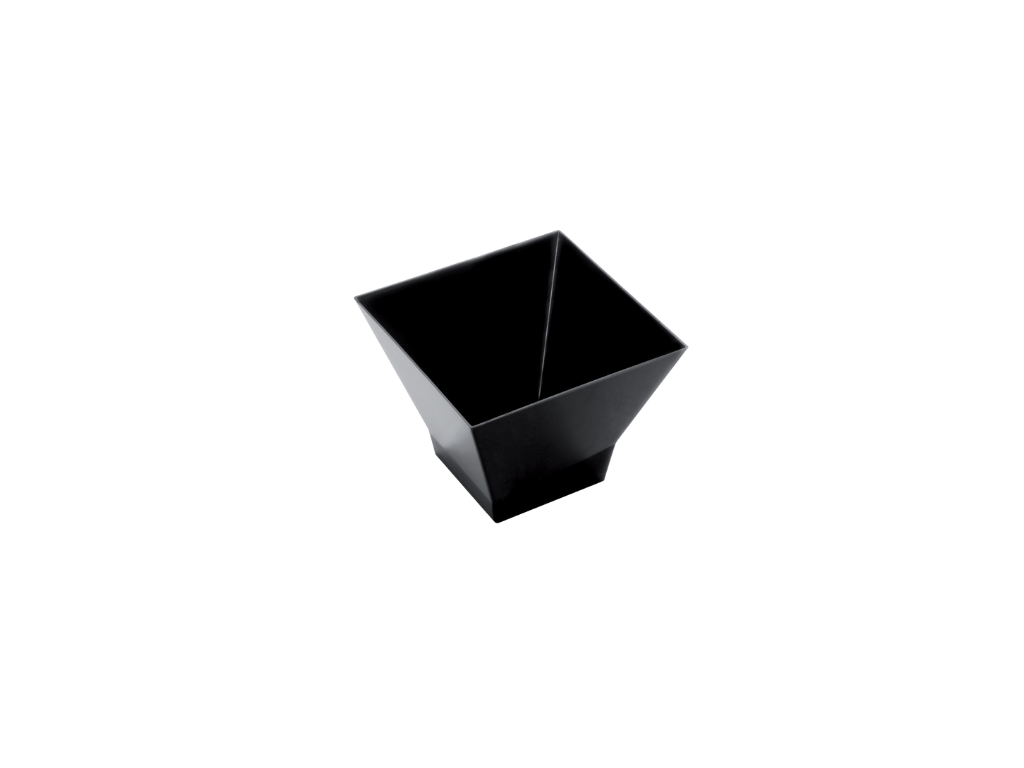 Elegantní černá plastová mistička dodá servírování dezertů, tapas či drobných pochutin moderní vzhled. Díky pevnému materiálu je odolná a vhodná pro opakované použití. Skvěle se hodí pro rauty, catering i společenské akce. Balení obsahuje 25 ks.