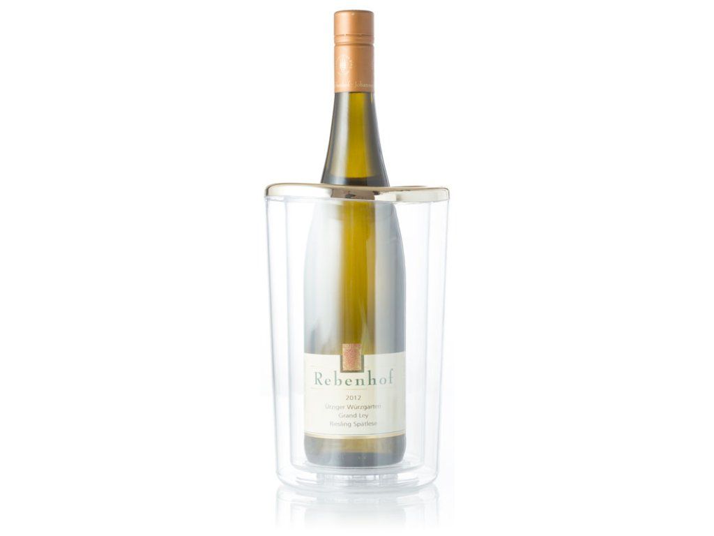Plastový chladič na víno Gondola se zlatým okrajem – transparentní dvouplášťová nádoba na 1 lahev s výbornými chladicími vlastnostmi.